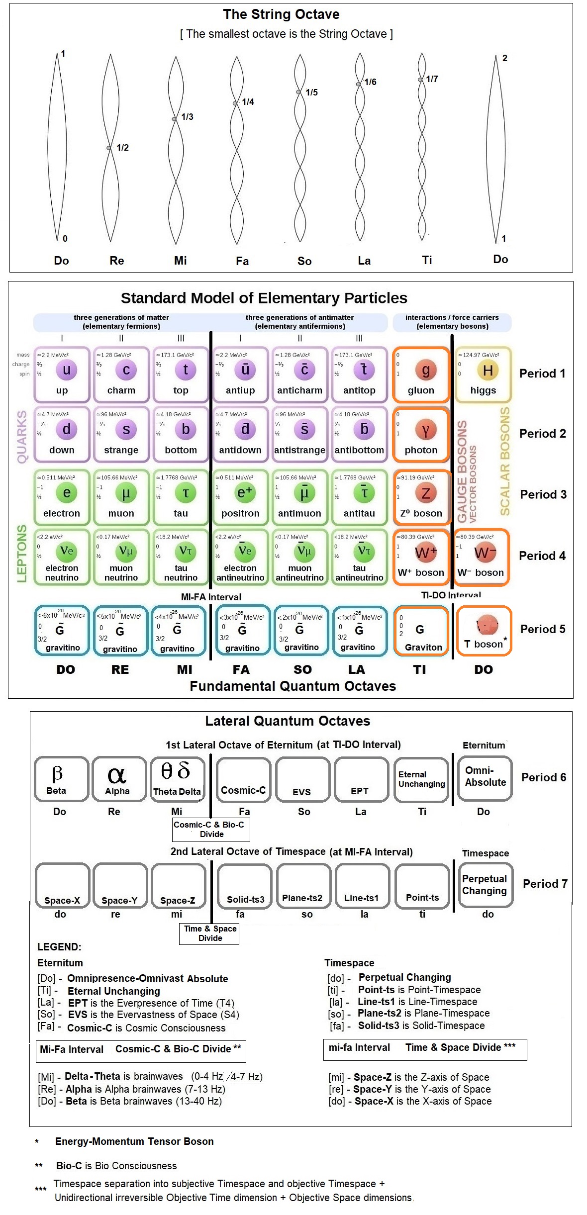 Sophons have cosmic properties that can penetrate and change the cosmic (psychic) properties of the world of atoms, their atomic-materialities (densities of matter and density of vibration) and certainly the atomic-materiality  of the atoms of man.  Found everywhere in the rays of creation, the 118 atoms of the Periodic Table of Elements (atoms) impregnated with cosmic properties in the form of psyche hydrogens (H1 - H12288) spread and shared among the elementary particles of the Periodic Table of Particles (wave-quanta) through the lens of Gurdjieff and Ouspensky can be observed from the current 5 All & Everything diagrams (tables), a sacred record of discoveries about cosmic secrets by the three-brained hethormen human beings on Mother Earth's surface to date, the familiar now mysteriously non-vivifying wonders of which are as shown below: